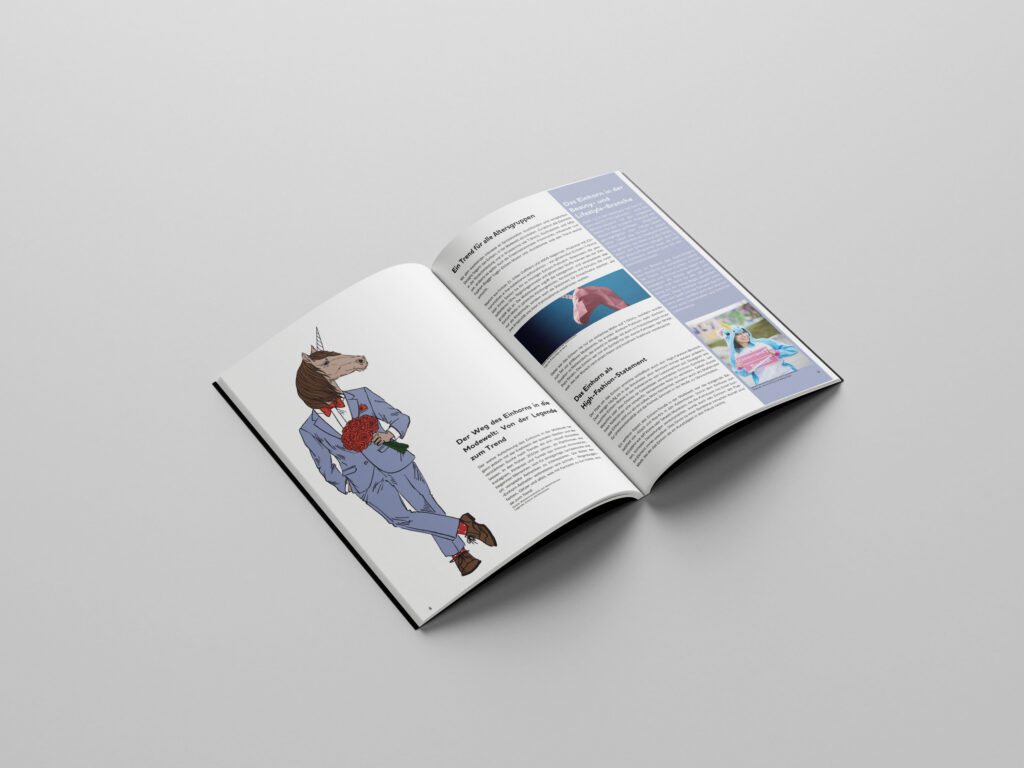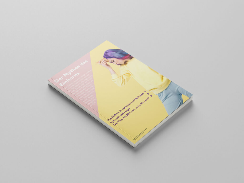 Das Modul 273 hiess Layouts anlegen und wir durften im Dreierteam eines von drei Themen auswählen. Wir entschieden uns für den Mythos des Einhorns, da wir dazu von Anfang an gute Ideen hatten. Zuerst wurden Skizzen erstellt, danach das Groblayout und das Satzmuster. Als nächsten Schritt konnten wir ans Gestalten der Seiten gehen. Alle Texte waren vorgegeben, somit wurde es für uns eine Challenge so viel Text auf eine Seite zu bringen. In diesem Projekt konnte ich sehr viel über InDesign lernen und im Team mit diesem Programm zu arbeiten.